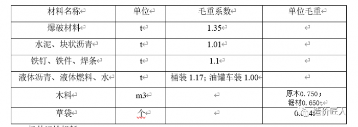 材料毛重系數(shù)及單位毛重表