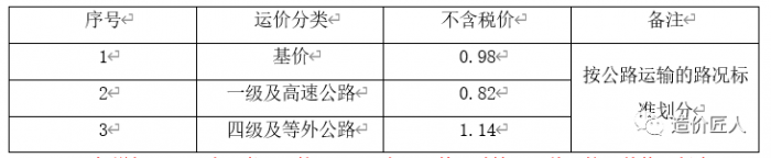 (3)運(yùn)輸條件惡劣的山嶺可適當(dāng)提高運(yùn)費(fèi)單價(jià)。